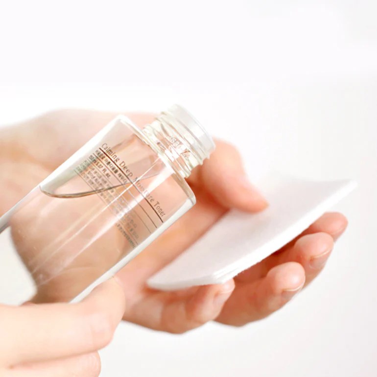 In the first step of skin care, moisten a cotton pad and gently wipe it along the skin texture to keep it moist.